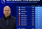 利物浦在英超前23轮比赛后战绩并不如预期。德转也发布榜单,统计了各赛季英超卫冕冠军23轮后的积分榜。
