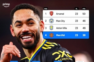 体育资讯1月27日讯 英超第23轮比赛,曼联客场3-2击败阿森纳。此役过后,曼联积38分排名英超第四位,落后榜首阿森纳12分。