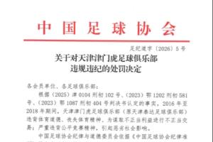 体育资讯01月29日讯 中国足协公布足球行业“假赌黑”处罚决定,天津津门虎俱乐部被扣10分并罚款100万元。