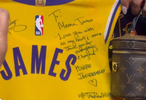 赛后,詹姆斯在自己的球衣上写上了对母亲格洛丽亚说的话,然后把球衣送给了母亲。詹姆斯在球衣上写道:“妈妈,我全心全意地爱你,甚至更多。感谢你所做的一切,远远不止这些。你真的太了不起了 ♥️ 真正的MVP。”