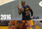 关于老詹的左手扣篮,十年之前,有一个一模一样的左手扣篮,扣完之后也是看着自己的左手,反应一模一样