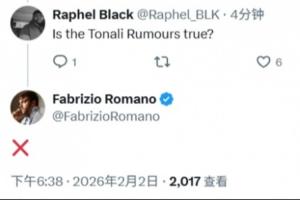 罗马诺辟谣!球迷问托纳利传闻是否为真,罗马诺回复:❌