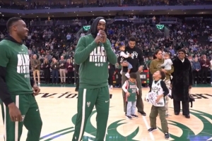 波蒂斯赛前祝贺字母哥连续第10次进入全明星 字母哥携家人到场