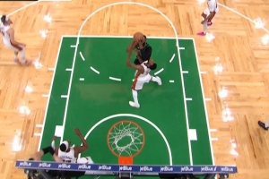 GIF-杰伦·布朗肘到维金斯打板命中被吹进攻犯规,绿军挑战失败