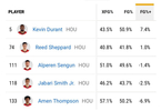 NBA为133名高出手次数的现役球员统计了