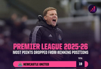 在本轮英超失利后,纽卡斯尔再次暴露出比赛掌控力不足的问题。数据显示,球队本赛季已经在领先情况下累计丢掉19个积分,这一数字为全英超最高。