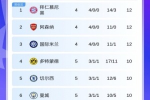 体育资讯11月26日讯 欧冠第5轮首日比赛结束,最新积分榜情况出炉。