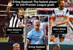 【哈兰德:111场英超打入百球,赛事最快百球!】此前的纪录是阿兰-希勒保持的,124场百球。