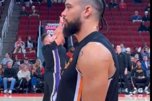 GIF-狄龙赛前目不转睛紧盯火箭方向