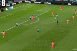 两分钟后费兰凌空侧钩破门完成双响,巴萨反超比分,2-1贝蒂斯!