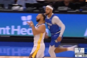 GIF-库里投中三分后扮鬼脸嘲讽萨格斯