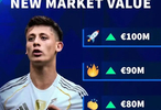 西甲球员最新身价即将迎来更新,德转官方为居莱尔最新身价预热,最高上涨至1亿欧,最低7500万欧。