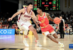 12月12日,浙江方兴渡队球员布朗(右)在比赛中进攻。新华社记者 江汉 摄