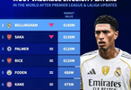 德国转会市场在本周内更新了英超、西甲球员的身价,并列出英格兰球员身价排名,皇马中场贝林厄姆尽管在此次周期身价跌了2000万欧,但他仍然以1.6亿欧居首。