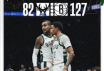上半场结束时,雄鹿就已经落后接近20分。第三节比赛结束时,雄鹿已经落后快30分。然而到了末节,雄鹿最后7分钟10投0中,一分未得,还出现3次失误,最终也净负45分。