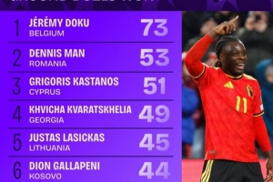 世欧预地面成功对抗榜:多库居首,克瓦拉茨赫利亚、布拉德利在列