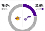 ESPN对本场比赛胜率进行了预测,湖人78%,爵士22%。