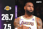 詹姆斯生涯19场圣诞大战场均可以贡献26.7分7.5篮板7.2助攻。