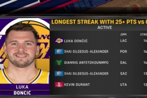 球员VS球队连续25+纪录排名: