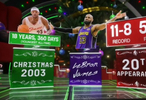 明天将是詹姆斯生涯第20次参加圣诞大战,此前他圣诞大战的战绩为11胜8负,共砍下507分,保持着圣诞大战历史得分纪录。