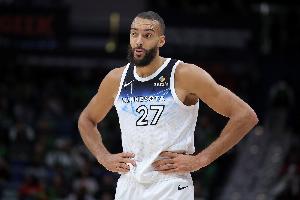 上半场,森林狼中锋戈贝尔表现不俗,打了14分钟3投2中,罚球2中1拿到5分7篮板3盖帽,有3犯规,正负值+13。