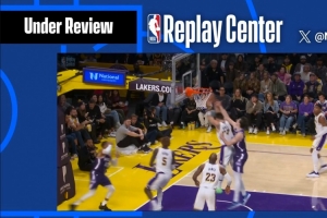 GIF-湖人挑战东契奇出界成功,雷诺推人犯规