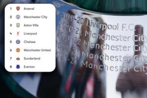 现今英超前八恰好就是历史上最成功的八支球队,顶级联赛合计91冠