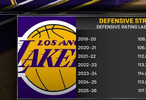 湖人近7个赛季的防守效率排名⬇️