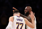 今日湖人球员东契奇(36分)、詹姆斯(26分)、拉拉维亚(26分)连续第二场比赛同场砍下20+。