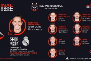 体育资讯1月10日讯 西班牙足协官方公布了西超杯决赛裁判安排情况,主裁判为何塞·路易斯·穆努埃拉。