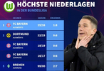 此外,狼堡队史共计有9场5球以上的惨败纪录,其中4次都是对阵拜仁,另有2次是在对阵不莱梅时遭遇。