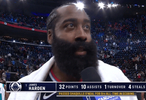 赛后,詹姆斯-哈登评价他和伦纳德联手砍下67分: