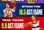 魔术师生涯场均助攻11.19次、斯托克顿为10.51次、特雷·杨为9.81次。