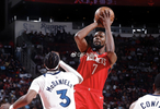 全场比赛,杜兰特出战超过40分钟,18投11中,其中三分球8投6中,罚球14中11,高效砍下39分,并贡献4篮板、7助攻、2抢断和1盖帽的全面数据,正负值高达+16。这39分,也创下了他加盟火箭以来的单场得分新高。更可怕的是其进攻效率,根据统计,这是他职业生涯第21次以超过80%的真实命中率得到至少35分,这项数据在锋线球员中已经超越勒布朗·詹姆斯,升至历史第一。