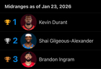 杜兰特322球领跑本赛季中距离进球榜