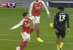 正方(进球无效):多尔古停球的时候,皮球击中手,向前弹,他才有机会抽出世界波,他从中获利了!