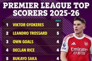无射手榜前20!阿森纳英超进球榜:约克雷斯21场5球居首,乌龙第3